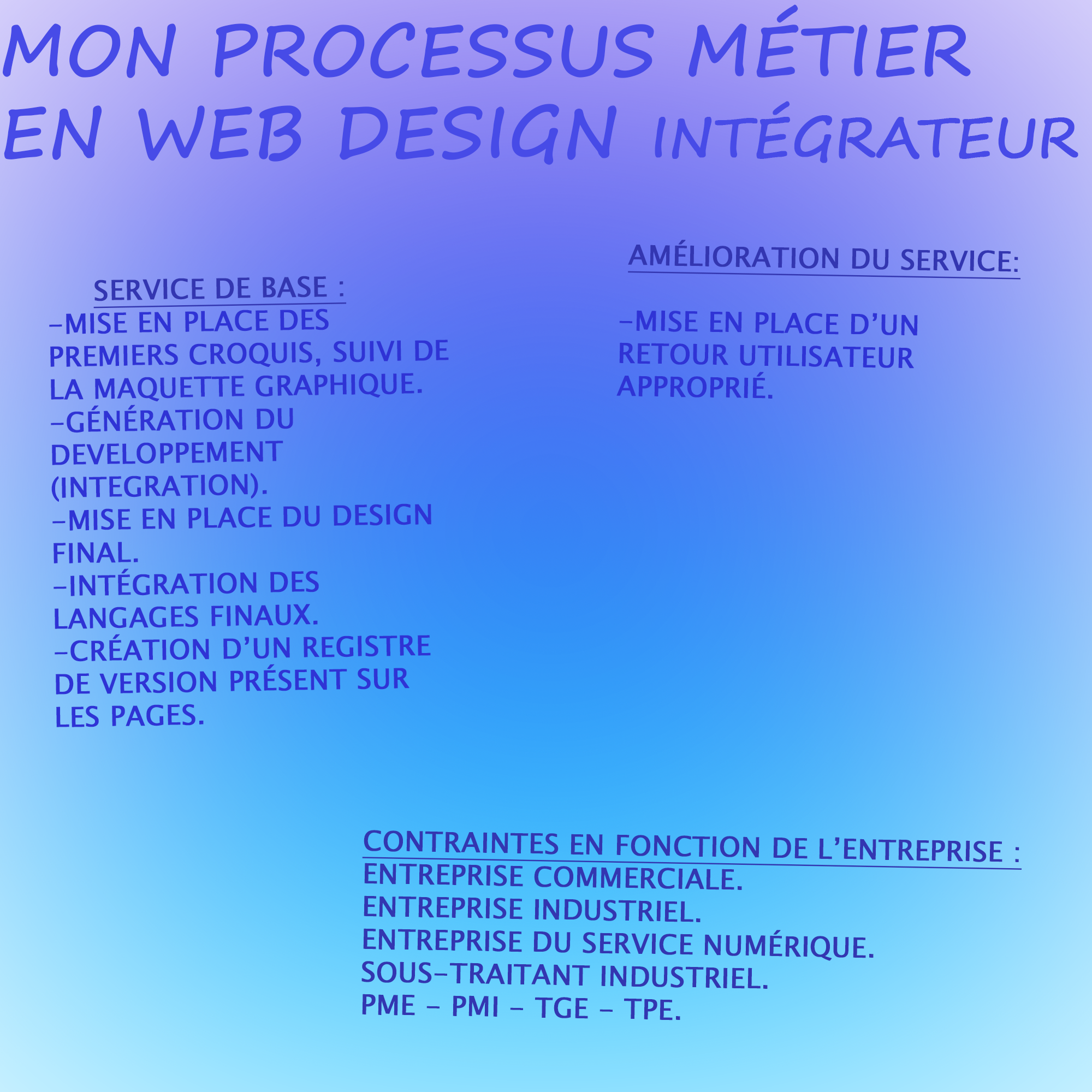 Le travail concernant la partie développement d’un site web, passe par plusieurs étape importante dont : Rédaction du cahier des charges, étude de recevabilité, analyse des éléments finaux, développement du projet, mise en place des essaie graphique, finalité de l’ensemble, livraison au client. En effet l’ensemble des éléments cité ci-dessus sont le fruit d’un travail minutieux et demandent pas mal d’étape, certaine facultatif d’autre appartiennent à une réelle professionnalisation du web.
